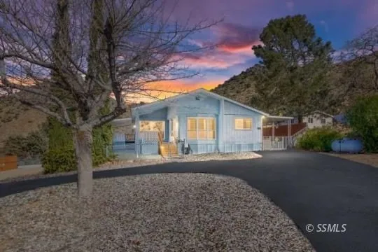 At the top of Bodfish Canyon, There is an amazing property to be discovered! A beautiful triple wide with 2 bedrooms, 2 baths, a 2 car garage all on over 1/2 acre zoned for horses. The home has been beautifully redone over the last few years with new flooring, paint, appliances. Amazing views from most of the windows in this home! Large living room has a pellet stove, dining room is surrounded by windows and quite charming. The kitchen has a center island with pull out drawers, lots of cabinets and counter space. Wheelchair accessible ramps with 36' doors on bedroom and bath. The main bedroom is humungous with TWO walk in closets, a deck, and bathroom with a soaking tub, linen closet and shower. Lovely. Electric hookup for an RV by garage. Two evap coolers and a forced air furnace. This one is a must see.