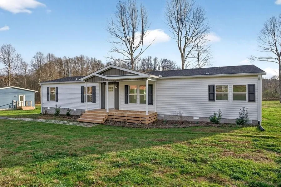 This energy-efficient 3-bed, 2-bath home offers 1,625 sq ft on 1.317 acres with eight-foot flat ceilings, finished drywall, and abundant natural light from numerous windows. The kitchen features stainless appliances, a wall-mounted range hood, a large central island, a double-basin farmhouse sink, and generous cabinet space. Two secondary bedrooms off the kitchen include carpeted flooring and share a hall bath with a solid fiberglass tub/shower and ample storage. The primary suite offers a luxurious freestanding sit-down tub, a walk-in shower with a rain shower head, and a spacious closet with built-in drawers and organizers. A mudroom with utility sink adds everyday convenience.