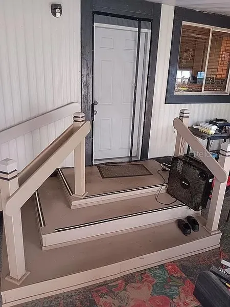Very clean and comfortable. Totally remodel inside and outside. All new subfloors 5 years ago, roof is rubber. Very nice patio area with tv, ac, utility sink and lights. Lots of storage in the outside laundry room. Washer and dryer stays also the new dishwasher inside stays. New refrigerator and new stove are negotiable to stay if needed. Lot rent is approx. $600 monthly.