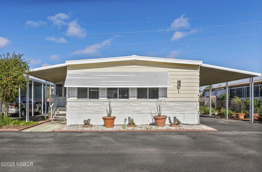 KICK OFF THE NEW YEAR in this MOVE-IN-READY 2-bedroom, 2-bath mobile home in the desirable 55+ La Maria Mobile Home Park in Santa Maria. With approximately 1,344 sq ft, this home features a spacious, light-filled sunroom, roomy living area, bright dining space with built-in hutch, and a kitchen with a breakfast bar and adjacent to this is the laundry area. Both bedrooms are spacious and welcoming, HIGHLIGHTED BY FULL-HEIGHT DOORS that create a more open appearance.--Guest bedroom is near the hallway bathroom with a shower and ceramic tile flooring, while the primary bedroom offers two large closets, a private bath with tub and a separate vanity with plenty of space. Enjoy a fenced backyard with a brick rear wall for added privacy, white picket-style fencing, and direct access to a storage shed. Additional storage is available in the covered carport with a second shed featuring new floori...