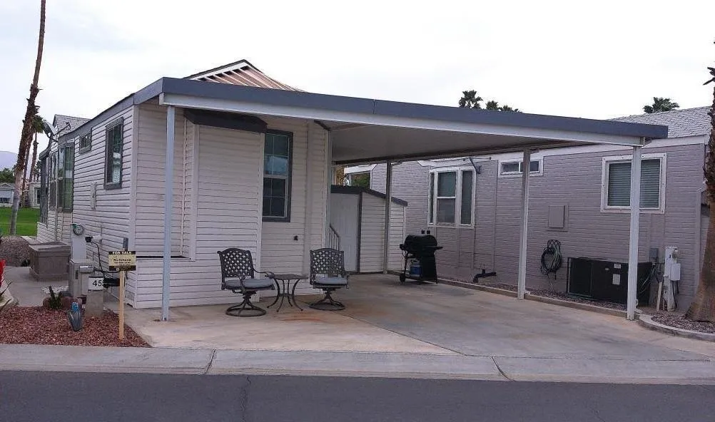 This 1999 Hallmark Alexandria Park Model has been ''upgraded'' through-out. New Tiled Shower, New Granite Counters, New Flooring and more. Located on the 1st Fairway, with a wrap around deck offers views of the Tee box and Green. Accenting the view is the Mountains in the Background and Lake in Front. Auto Aluminum Shutters, Etched front door are the finishing touches to this outdoor living area. Inside an open floor plane with stunning granite countertops. New Tiled shower finishes this Park Model off. Park Models on this hole are one of the most desirable areas in the Park. Rancho Casa Blanca (RCB) features a beautifully landscaped 80-acre property with 801 individual Park Model homes/or RV sites, Two large clubhouses that function as social hubs & 4 satellite buildings with laundry facilities, mailboxes, heated pools & relaxing spas. As an owner you will enjoy FREE GOLF on your 18-hol...