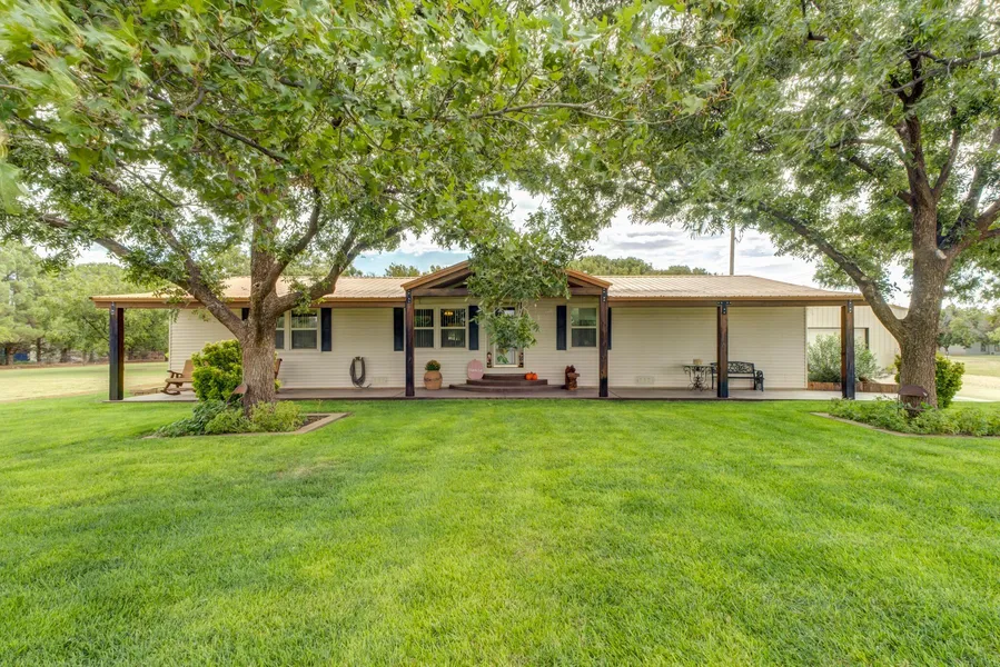 This beautiful 3-bedroom, 2-bathroom manufactured home sits on 1.5 acres in the highly desirable Lubbock-Cooper School District - offering the perfect blend of comfort, charm, and country living, but close to the city. You'll love the open-concept living room, kitchen, and dining flow seamlessly together, with a clean and cozy atmosphere throughout. The property is a true outdoor oasis, featuring a well-manicured yard filled with 12 mature pecan trees, 2 apple trees, and 2 pear trees, all maintained by a full irrigation system. Enjoy peaceful nights on the large, outdoor patio. Bring your hobbies and projects - there's a 30x60 insulated shop with a lean-to, perfect for storage, work, or play. An electric gate and storm cellar adds privacy and security, while a two-car garage and garden area complete this wonderful setup. This property has been lovingly maintained and offers a rare opportunity to enjoy a peaceful country feeling..
