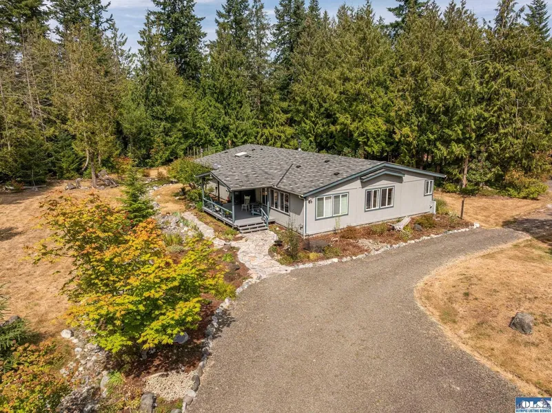 COMPLETELY FENCED YARD ON 5.04 BEAUTIFUL PRIVATE ACRES WITH NO HOA!!! You feel like you are in your own park. This spacious triple-wide home sits directly across the street from Miller Peninsula State Park which is a 2,800-acre day-use park which has miles of hiking trails & lush coastal forest with views of Discovery Bay & Strait of Juan De Fuca. Home has 2,722 SF with 3 BR & 2 BA, living room with wood stove, family room, dining room, kitchen with island - breakfast bar - pantry - nook, primary BR has a sitting area & his & hers closets, garden room. Deck in back, covered front porch. 3 sheds, 900 SF garage with shop space, 2 carports, fenced garden area, RV hookups. Back of the property is wooded including Western red cedars & trails. Septic & Cascadia Water.