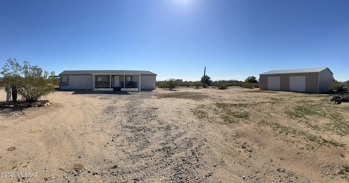 Amazing opportunity for a 3 bedroom, 2 bath manufactured home on 4-acres. Peaceful retreat with a new, massive 1500 square foot garage. Plenty of space for all of your toys. Majestic views of the Tortolita Mountains from the new covered front porch. This spacious home has so much to offer including a new roof (Nov 2023), new water heater, new kitchen cabinets, new countertops, new stainless steel appliances, new bathroom vanities, new textured walls and interior and exterior paint. The large storage shed is like new. Privacy galore makes for the perfect quiet country living. It's just a short drive to I-10 and easy commute to Tucson.