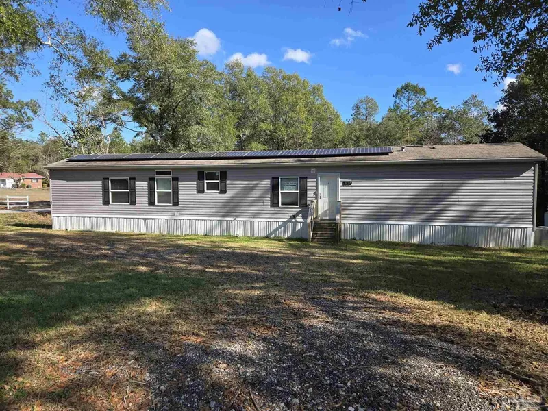 This manufactured home, was built in 2020, and offers 3 bedrooms and 2 bathrooms across 1140 sq ft of living space. All of the appliances convey. The primary bedroom and bathroom are split from the two additional bedrooms on the other end of the home. While this is a foreclosed property, it is in great condition and move in ready. The home also has solar panels on the roof. The backyard is cleared with a storage shed. Conveniently located just minutes from downtown Crestview, this property is perfect for those who balance access to amenities and value privacy.