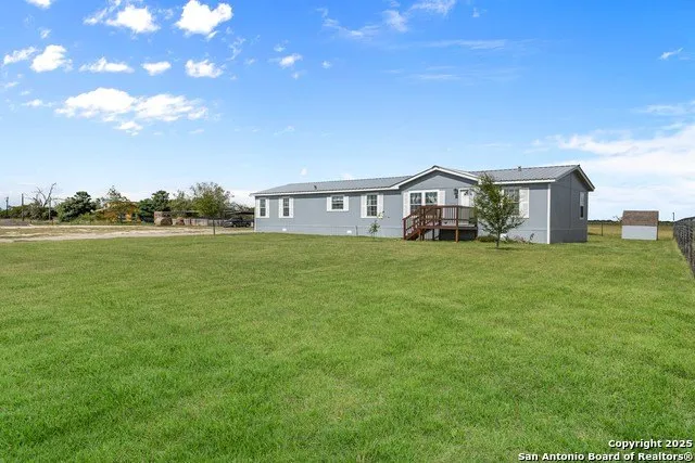 Nestled on almost 7 fully fenced acres, this property features a spacious 5-bedroom, 2 bath home offering over 2,184 sq. ft. of living space. The home boasts an open-concept layout with two living areas and a large island kitchen perfect for gatherings and everyday comfort. In addition, the property includes separate utilities for a second home, providing great potential for multi-generational living or rental income. Enjoy the freedom of NO restrictions, along with BMA water rights, a private well, septic system, horse stalls, livestock fencing, a large carport, and a detached storage/workshop. Experience peaceful country living, beautiful sunsets, and quick access to San Antonio. A must-see property with endless possibilities!