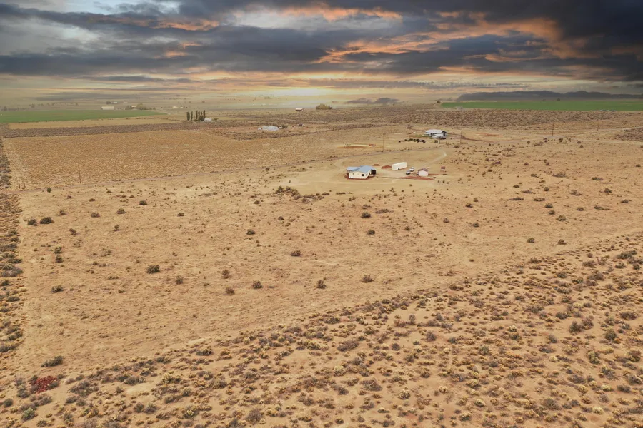 Enjoy the Sunrise and Sunsets from this beautiful home perched on an elevated private and peaceful spot overlooking the valley and mountain ranges just 100 yards off the paved main road. Incredibly clean and well maintained home with some nice upgrades such as a metal roof, marmoleum tile flooring throughout the kitchen, laundry and dining area, new exterior paint, solid core fir interior doors, ceiling fans, propane fireplace for additional heat, jetted tub and upgraded carpet. There's also a full concrete slab underneath for clean easy access. About 20 acres of cleared land with underground sprinkler system already installed and RV parking that has full hookups. Close to BLM and Sand Dunes. This property is turn-key and ready to go, set up your viewing appointment before it's gone!