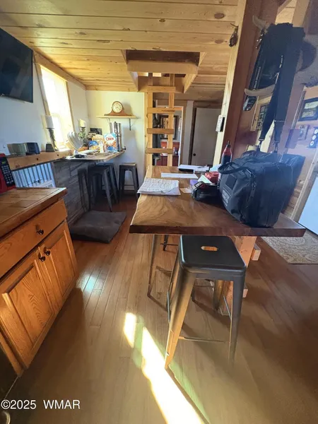 If you are ready to live off grid, yet have the comfort of modern amenities, this is the place. Plot is appx 20 acres of flat land with views off the Black Mesa. Total pf 3 buildings. The main building is a 2012 Graceland shed shell, that has been upgraded to a fully functional cabin by a licensed contractor. Has both a wood stove and propane heater. has a mini swamp cooler, and a tankless hot water heater. Downstairs kitchen, living area , bathroom with a cedar shower and a utility room with a washer. Closet is down stairs, and main room can also be used as a bed room if desired. Currently one of the lofts is used for a sleeping area. Second loft is storage. This home shows pride of ownership. Other two buildings are for storage and Solar set up with back up generator.