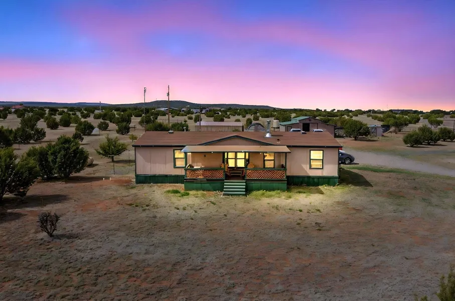HUGE PRICE DROP! Experience panoramic prairie views by day and breathtaking starry skies by night at this turnkey 10-acre homestead. Fully fenced and on a private well, this beautifully maintained property offers space, privacy, and self-sufficiency. Well-appointed outbuildings elevate the property's potential: 1,216 SF barn with a solid foundation, tube steel framing, metal roof, stalls, chicken coop, and 250v electric; 252 SF greenhouse for year-round growing; 540 SF heavy-duty I-beam shed with foundation, and an additional 336 SF furnished bunkhouse with washroom--perfect for guests or multi-gen living. Only a beautiful 40-minute mountain drive to Albuquerque and 1-hour to Kirtland AFB! Schedule your private showing today!
