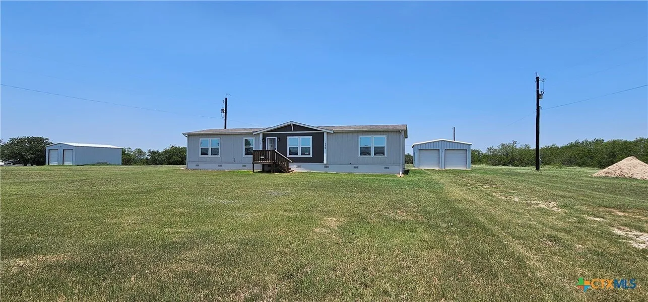 Discover peaceful country living just minutes from downtown Gonzales. This upgraded 3-bedroom, 2-bath manufactured home sits on a quiet 2-acre lot, offering space, privacy, and modern comfort. Enjoy an open-concept layout with natural light throughout. The kitchen features stainless steel appliances, a large island, and plenty of cabinet space-perfect for everyday living or entertaining. The spacious primary suite includes a luxurious bath with soaking tub, separate shower, and dual vanities. Energy-efficient features ensure year-round comfort, while the large yard offers room to garden, relax on the deck, or raise animals. Located on a private road, this home offers a quiet setting with quick access to local shops, restaurants, and major highways-ideal for commuters or those seeking a weekend escape. Don't miss this move-in-ready home on acreage in Gonzales, TX.