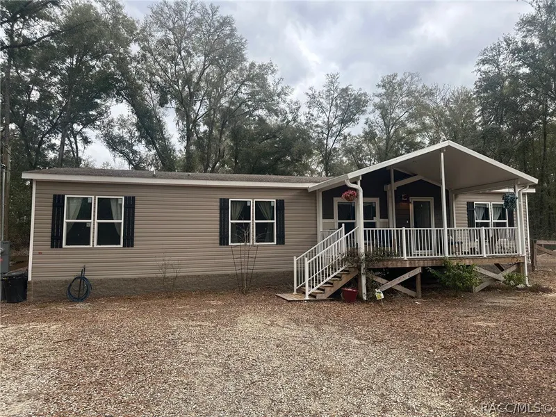 NEW TO MARKET!! This 3/2/1 2022 1680 SF home is nestled on a beautiful 1.73 acre FENCED parcel conveniently situated between Crystal River and Inverness right behind the Withlacoochee State Trail. Prominent features include split floor plan, luxury vinyl plank in common areas, large farm style kitchen with island, living room with electronic fireplace with beamed ceilings and wood accents, front deck/porch, principal bedroom ensuite with both shower and garden tub, 20' x 36' pole barn, and perimeter backyard fencing. No HOA fees and regulations! Bring your RVs, boats, toys, and interests! Call today to schedule a personalized tour!