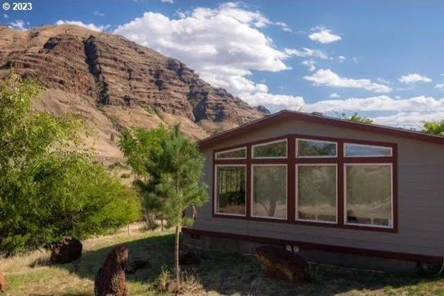 Imnaha Canyon Country at its best! Enjoy this 2 bed 2 bath manufactured home on 17.86 acres. The property has easement access to Basin Creek and Grizzly Ridge for foot and horse traffic leading to a remote and wild section of the Snake River Game Unit. It is also in the Chesnimuns Game Unit allowing for recreation and hunting opportunities. The property borders an 80 acre BLM Parcel to the north and the massive Zumwalt Preserve to the west meaning the view will never be obstructed by development. Just down the road is the public access to the river at the bridge for fishing or swimming. From the property, only a mile down the road is where the pavement ends and the Hells Canyon recreation area begins. Ride a recreational vehicle all the way to Dug Bar from the property. Enjoy high diversity of wildlife: Bighorn Sheep, Elk, and Mule Deer are commonly seen moving through the property to access the river. Eagles and falcons nest in the cliffs on the property. The private well pulls clean cold water from the Chesnimus Aquifer and has a brand new pump. The property benefits from new underground utilities including an excellent modern septic system and a new electrical power transformer, ensuring fewer power outages. Excellent A/C, forced air and a propane fireplace combined with R40 insulation keeps you warm or cold more efficiently. The house enters the shade during the hottest afternoons of the year and is accessed by a paved road. The house is set on a concrete perimeter foundation and has multiple pioneer apricot trees with plenty of acreage for an orchard or garden. Multiple sites for a shop or barn exist on the property for ease in developing the property for stock animals. Diverse terrain on the property, includes a locust grove, pasture, and multiple canyon rims. This is a 'one of a kind' property that includes all the multiple benefits of Imnaha Canyon Country living. See it today!