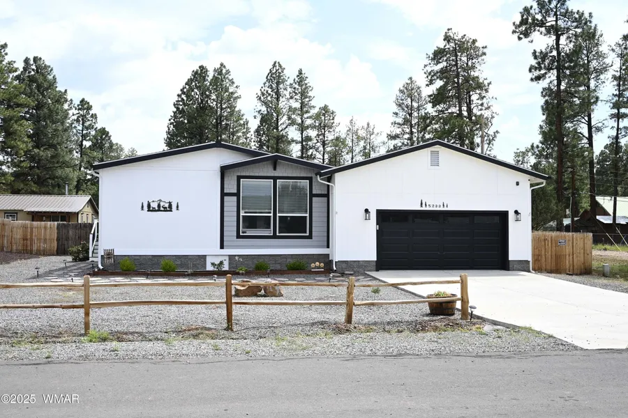Experience mountain living at its finest! Located just minutes from Show Low Lake, this beautiful 3-bedroom, 2-bath home features an open-concept design with a desirable split floor plan and extra living room. The kitchen showcases crisp white cabinetry, tile backsplash, and solid-surface countertops, all complemented by abundant natural light from large windows throughout the home. Luxury vinyl flooring and upgraded insulation add warmth and comfort year-round. An oversized, tall two-car garage is perfect for the craftsman or hobbyist. Step outside to a spacious Trex deck overlooking a serene 7-acre park with walking paths and a BBQ area. Additional features include an RV gate and electrical hookup, continuous wood fencing and a peaceful setting ideal for a mountain getaway. A must-see! Highlights: 3 bedrooms | 2 bathrooms 2021 CAVCO Manufactured Home .24-acre cul-de-sac lot Solid surfa...