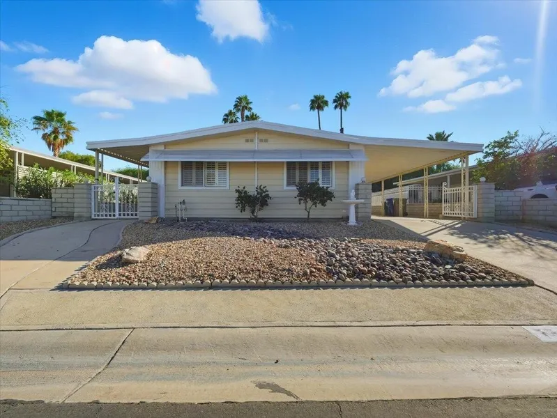 Welcome to your desert oasis in the highly sought-after Palm Desert Greens Country Club! This home offers the perfect blend of comfort and resort-style living and is in close proximity to the main clubhouse. Enjoy spacious, light-filled interiors featuring an open-concept living and dining area, and a large primary suite with ample closet space. This rare split floorplan offers privacy while family and friends are visiting with the guest bedrooms seperate from the primary suite. Step outside to a private patio-ideal for relaxing or entertaining guests and enjoying the beautiful desert sunsets. As a resident of Palm Desert Greens, you'll have access to a wealth of amenities, including a golf course, multiple swimming pools, fitness center, tennis courts, and a vibrant restaurand and clubhouse with social activities. With 24-hour gated security and a friendly community atmosphere, this is ...