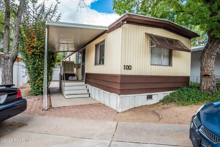 Discover comfort and charm in this delightful 2-bedroom, 2-bathroom manufactured home (12x60) nestled within the welcoming Prescott Gardens community. This cozy 720 square foot residence offers the perfect blend of convenience and tranquility for those seeking an active 55+ lifestyle. Step inside to find fresh laminate flooring gracing the living room, front bedroom, and bathroom, while mature trees provide natural shade and character to your outdoor space. The home features updated plumbing, updated furnace, and ensuring modern reliability in your daily routine. Located in the heart of Arizona's mountain country, you'll enjoy easy access to Prescott's vibrant downtown scene while maintaining peaceful residential living. The surrounding area offers excellent conveniences, including nearby Safeway for grocery needs and Groom Creek Horse Camp for outdoor recreation. This charming property sits in an established neighborhood where mature landscaping creates a serene environment. Whether you're downsizing or seeking a low-maintenance lifestyle, this home provides the perfect launching pad for exploring everything Prescott has to offer.
