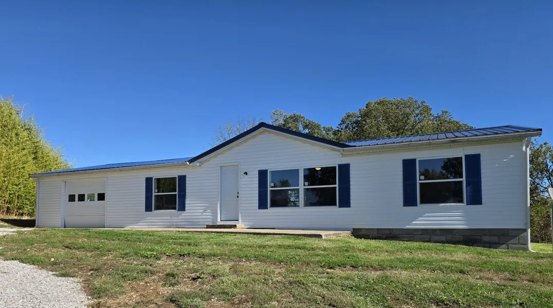 This doublewide features an all new septic system, newly improved interior, new siding, an attached garage and detached garage all on over an acre of land.