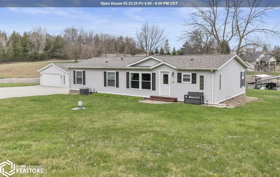118' of Lakefront Property with Breathtaking Sunset Views Discover this exceptional Highland-Champion manufactured home, perfectly situated on nearly an acre of land with 118 feet of freshly rocked shoreline. Enjoy unobstructed lake views and serene sunsets from this flat, easily accessible lot in the highly sought-after "Crappie Cove." This well-maintained home features numerous recent updates, including windows, most doors, fresh paint, updated fixtures, a 2024 roof, central air, a newer water heater, and modern appliances. The low-maintenance siding ensures lasting durability. Step inside to a spacious open-concept layout designed for comfort and functionality. The home boasts two generously sized bedrooms with corner closets and a luxurious master suite complete with an expansive en-suite bathroom, featuring double sinks, a jetted tub, and a separate shower. The large kitchen opens directly to a spacious deck-ideal for entertaining while taking in the spectacular water views. Additionally, the fully insulated garage is designed for both storage and entertainment, featuring custom-built guest accommodations and dual overhead doors that open to enhance the lakeside experience. A double floating dock with power provides easy lake access, making this property perfect for boating and water activities. Whether you're looking for a move-in-ready lakefront retreat or the perfect lot to build your dream home, this is it!
