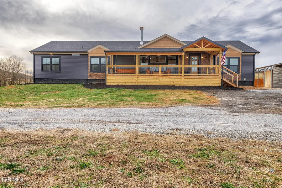 Welcome to this expansive and thoughtfully designed home on 3+/- acres offering over 2,400 sq ft of comfortable, modern living space. Featuring an oversized en-suite with a stunning bathroom complete with custom shower and soaking tub. Enjoy three spacious guest bedrooms and 2 full guest baths, this home is perfectly suited for both everyday living and entertaining. The open floor concept creates a seamless flow throughout the main living areas, highlighted by a stunning stone wood-burning fireplace that serves as a warm and inviting focal point. The oversized kitchen island anchors the gourmet kitchen, complete with luxury appliances (Beko) including a gas cooktop and dual refrigerator, ample cabinetry, and generous workspace with quartz countertops ideal for hosting gatherings or enjoying quiet mornings at home. 9 ft ceilings! A well-appointed utility room adds everyday convenience and includes a dedicated pet washing station, perfect for animal lovers. Step outside to enjoy the beautiful covered front porch, an ideal spot to relax and take in the peaceful surroundings. The property sits on over three acres of land, offering privacy, space, and endless possibilities for outdoor enjoyment. Completing the package is a 720-sq ft detached garage with two attached carports, providing abundant room for vehicles, storage, or a workshop. This exceptional property combines modern comforts, thoughtful features, and expansive outdoor space. This property is located within an easy drive to the Great Smoky Mountains National Park and Gatlinburg, Pigeon Forge, Douglas and Cherokee lakes. Buyer & Buyer's agent to verify exact information.