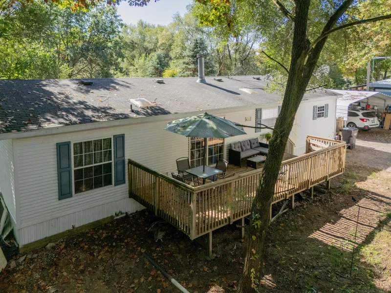 This country home has so much to offer. 3.4 ACRES of WOODED property recently brush hogged for groomed walking trails. Includes A 26x32 OVERSIZED GARAGE W/ 220 AMP SERVICE, 9' DOOR and a WOOD STOVE FOR HEATING. It also includes an additional STORAGE SHED and CARPORT. There is 1,356 sq. ft. offering 3 BEDS, 2 FULL BATHS, OPEN FLOOR PLAN W/ VAULTED CEILINGS, STONE FIREPLACE and a large DECK for enjoying the privacy of country living. Recent IMPROVEMENTS: NEW LUXURY VINYL FLOORS & CARPETS THROUGHOUT. NEW FURNACE AND A/C & HOT WATER HEATER 2022. NEW DISHWASHER 2024. INTERIOR PAINTED & LARGE GARDEN & RASPBERRIES BUSHES. GREAT HUNTING LAND. Located min from 131 hwy. in between GR & KALAMAZOO.