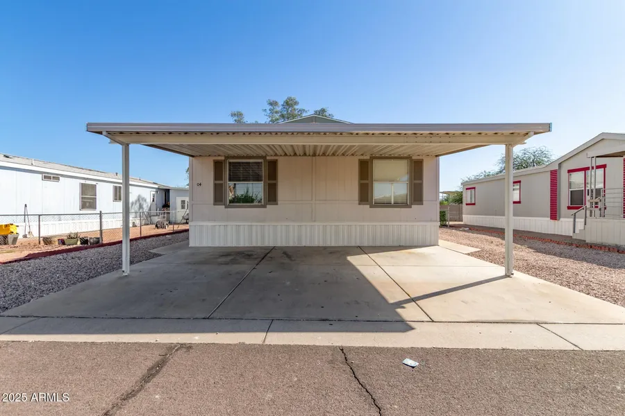 This charming 4-bedroom, 2-bath mobile home is the one for you! You're welcomed by a cozy living room with vaulted ceilings, a soothing palette, blinds, and stylish wood-look flooring. The eat-in kitchen comes with crisp white cabinetry, a tile backsplash, built-in appliances, and an island with a breakfast bar for quick meals. The primary bedroom features soft carpeting, an ensuite with dual sinks, and a walk-in closet. Outside, you'll find a shed for additional storage. Don't miss out on this one!