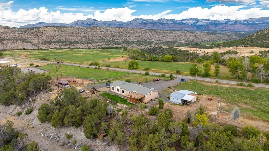 This beautiful home in Molina offers 1944 sq ft of living space and 4.38 irrigated acres. The spacious home has 4 bedrooms, 2 baths, living room and a family room. The kitchen has ample cabinet space, a breakfast bar, and a gas stove. Central air conditioning is newly installed! There are stunning views in every direction and a new covered deck to enjoy outdoor living. New fencing and an automatic gate. Everything you need is included: Pasture, riding corral, RV Parking, fruit trees, carport with shed, and abundant recreation right out your back door. Tractor and implements are negotiable with an acceptable offer.