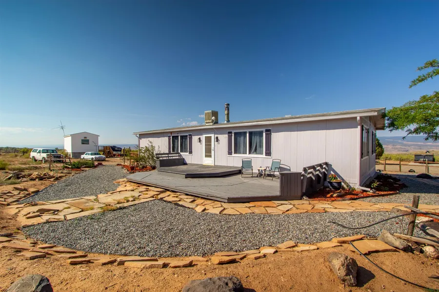 Come experience the peace and quiet of Reeder Mesa in this beautifully remodeled home designed for comfort, function, and Colorado living. Custom cabinetry and thoughtful storage solutions are found throughout the home, and the kitchen was tastefully updated in 2016 with granite countertops, LED lighting, and modern appliances. The open floor plan is anchored by a cozy wood-burning stove, perfect for warming up during those crisp Colorado evenings. With two spacious decks, one in front and one in back, you'll enjoy incredible outdoor living and breathtaking views of the Grand Mesa from the front deck. The split-bedroom layout offers privacy and flexibility, and the bathrooms include radiant floor heating for added comfort. You'll also appreciate the separate family room, currently used as an office, perfect for remote work, hobbies, or a second living space. The home features dual-zone e...