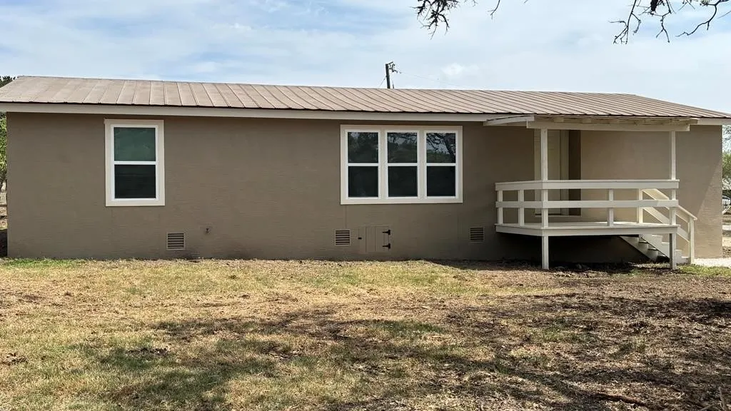 EPIC $50,000 PRICE REDUCTION! Extensively remodeled manufactured home located in the county with minimal restrictions Huge mature trees on 100% usable 2.75 acres. This home is a 3Bd and 2 bath split floor plan with a huge 11 X 53 foot covered back porch. Including a covered 10 X 7 ft front porch. All new flooring and paint inside and out on this home. Updated kitchen with all new appliances and updated bathrooms. Large master bedroom with two closets. An oversized utility room with a brand new sink. The plumbing has been completely updated including the hot water heater. All new windows and updated light fixtures plus many more updates throughout. Underground utilities on a central water system. This property has livestock pens in the back making it suitable for livestock, horses or 4H projects and lots of space for all your vehicles, work equipment and toys!
