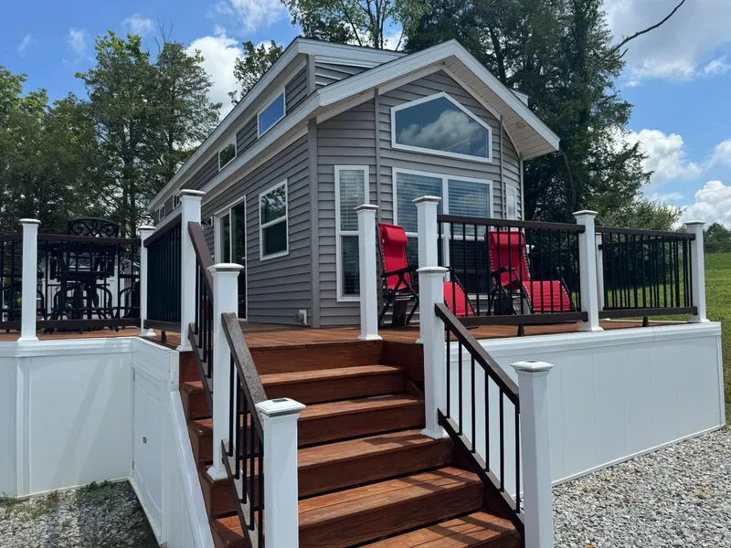 Escape to lakeside living at Lot #10, 15166 Old St Rd 101 in Liberty, IN! This fully furnished 2020 Woodland Park model (purchased new in 2021) sleeps 6-8 comfortably with a private bedroom, spacious loft, and pull-out sofa. Enjoy a full kitchen, cozy family room with electric fireplace, and 1 full bath. The wrap-around deck with solar lighting and insulated skirting is perfect for relaxing outdoors. A detached garage, custom wood-burning fireplace with lanterns, and included TVs add even more value. Your turnkey lake retreat awaits!