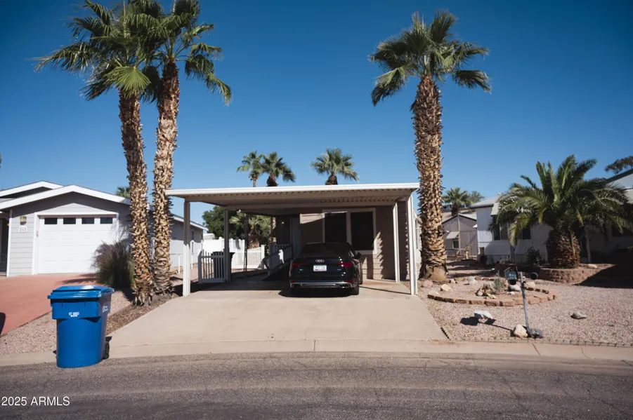 Cozy Desert Retreat in a Secure 55+ Community Tucked deep within a secure, gated 55+ community, this charming 2-bedroom, 2-bath manufactured home sits on a spacious corner lot with beautiful desert landscaping and a perfect mix of sun and shade. Fully wheelchair accessible, it features a front entry ramp, mobility-accessible bathroom and bedroom, water softener, tankless water heater, new fixtures, and an electronic keypad lock. The primary suite offers a vintage touch with an original avocado tub and separate shower in excellent condition. Cozy and inviting-ideal for full-time living or enjoying Arizona's perfect winter weather.