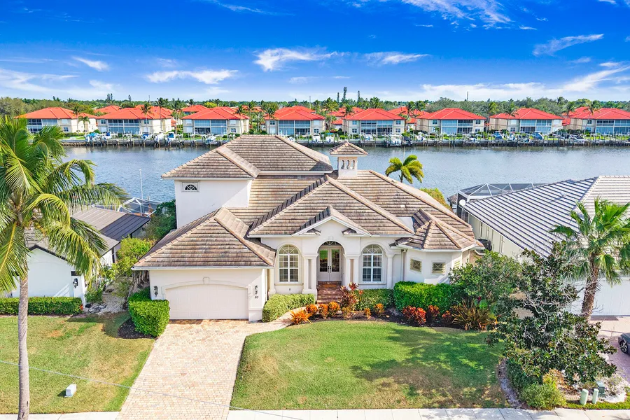 93 S. Seas Court is a centrally located four-bedroom, four-bath waterfront home with a half bath, den and fantastic views of a wide bay. Interior features include a luxurious primary bath with walk around shower, two water closets and separate Jacuzzi tub. Kitchen has custom wood cabinetry and granite countertops, and tile flooring in all common areas. Two bedroom suites down, and two suites upstairs with full baths. Both bedrooms go out to a large balcony. Exterior amenities are a large covered lanai. heated pool and spa. Large dock with a 12,000-pound lift. Seawall is 2004. Brick paver driveway and pool deck.