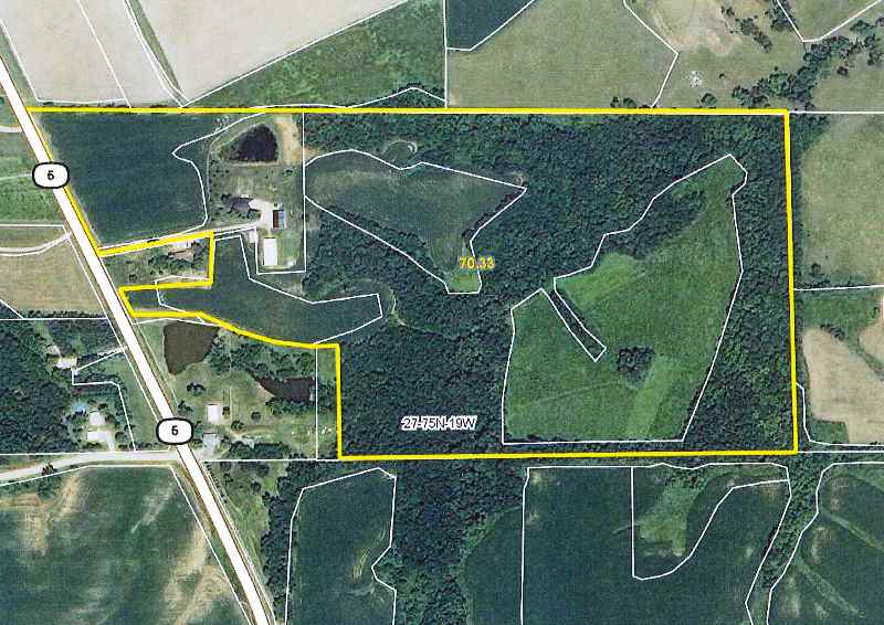 PENDING...70 acres m/l of diverse Marion County recreation ground with appealing 5 BD and 2.5 BA Brick Ranch. 1,380 sf, with full basement & attached 2.5 car garage. The main floor has kitchen, living, dining, 2 bedrooms, & 1.5 baths. Deck off the dining area offers scenic views of the half-acre pond stocked with bass, crappie & blue gill. The walk-out basement has living area, laundry/utility room, 3 bedrooms, and full bath. There is a 40x60 shop/garage: the shop area has an overhead door, is insulated and heated. The garage area has 2 oversized doors and a lofted storage area. There is also a smaller 8x12 utility shed. There are approximately 15 acres of crop ground with a 50/50 crop share agreement. An additional 15 acres of CRP with an annual payment of $1,536. 35 acres of timber with a creek running through from the south to the northeast. Located just 2 miles southeast of Knoxville.