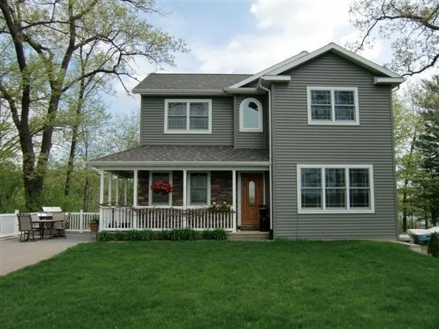 Bring your fishing pole to this 4 bedroom 4 bath 2 story Country Home for sale in Marquette County Wisconsin. Home rests on .42 acres of natures peace and quiet on Mulhern Lake also known as Knights lake. This Lake Home for sale in Wisconsin has many more features than just a 100+ feet of lake frontage for sale it is a custom built 8 year old home that has 2500 +/- sq. feet of finished space with a walkout basement, custom oak cabinets, granite counter tops, hardwood floors and a gas burning fire place for those chilly nights. Right down the road is 1000+ acres of public hunting land which has many of pheasants stocked throughout the season and many whitetail deer. This Country Lake Home for sale is within 15+ minutes of Portage and approx. 1 hour to Madison.