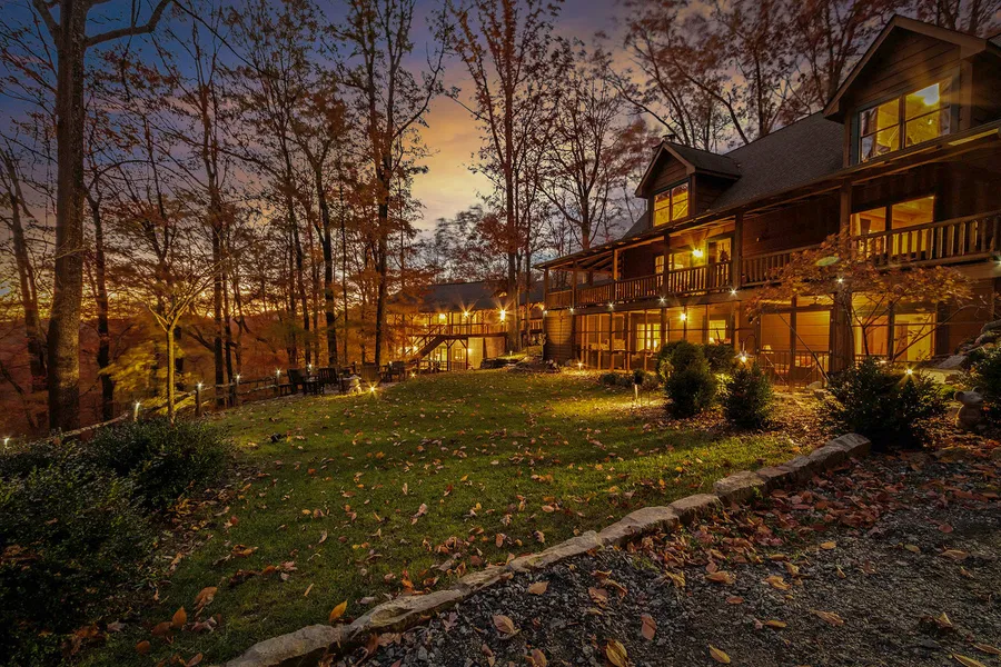 Privately elevated 38 acres in Mars Hill, this architect-designed retreat offers commanding mountain sunset views and refined craftsmanship. Inspired by the family's memories, the residence blends classic Adirondack architecture with the natural beauty of the Blue Ridge, adding natural rock elements, an outdoor fire pit, and a custom waterfall inviting you home.