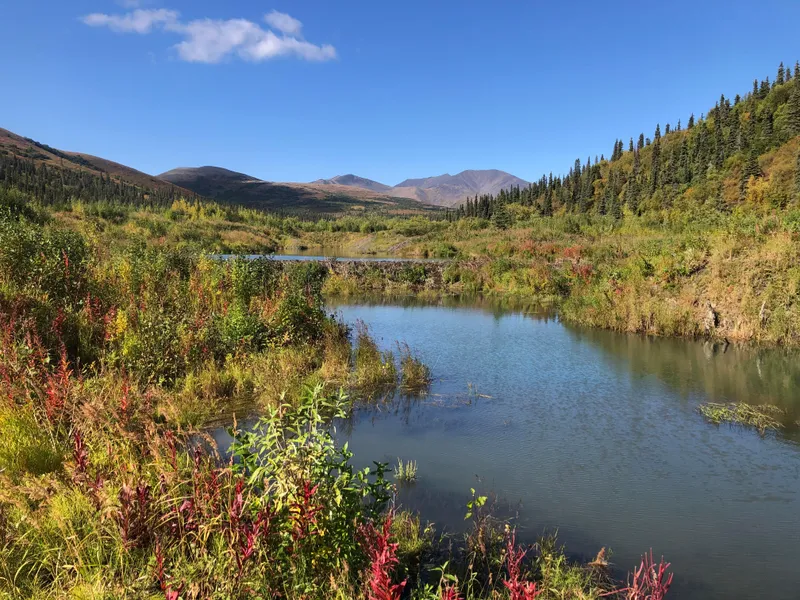 The area is abundant with wildlife, including moose, caribou, and brown bears