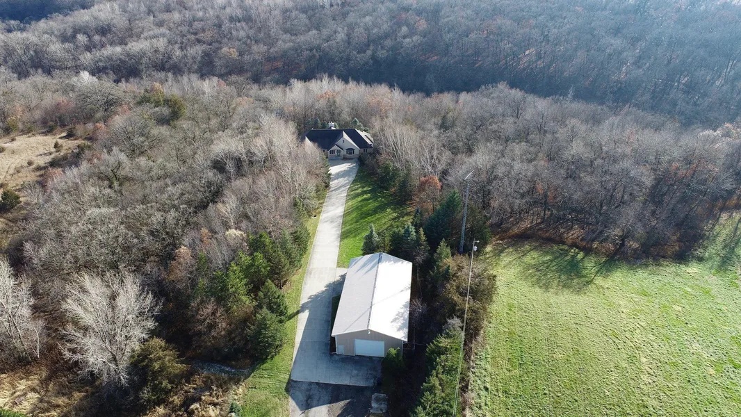 This custom-built walkout rambler is nestled in one of the finest timbered properties the county has to offer. You will be able to enjoy morning coffee and evening relaxations from one or both of the rear decks looking out into the timber, all while listening to the flowing water from Whitney Creek. The creek flows West to East through the middle of the property. Standing down or walking along the creek for a few minutes naturally relaxes you after a long day. The topography of the land is gently rolling with some trails. Deer hunting and turkey hunting are excellent in this area. The long private drive is welcoming, with farmland on either side of it. There is a good steel shop with a concrete floor and power for storing all of your toys. Inside the home, you will find huge rooms that make for great entertaining. The master bedroom has 2 walk-in closets, a large bathroom, and a den off the bathroom's opposite side. There is a living room, family room, formal dining room, sunroom, and laundry room all on the main level. You can tell the home was built very well. It just might be time for some updating. Finding a house of this size on one of the nicest 40 acres in Rochester, only 15 minutes to Mayo Clinic, is hard to beat. Call Bob to schedule your private showing.