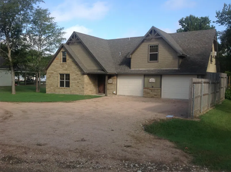 No one builds a home like a Builder building it for himself. This masterpiece 2 year old home features vaulted ceilings with large wood beam accents, open design den, dining and kitchen, a wood burning fireplace, stamped concrete flooring, granite in all the baths and kitchen, large closets unique to lake homes, and more. The master is down stairs with a nice closet and beautifully tile accented shower. Head up stairs where you will find three more bedrooms, two full baths and a bonus sleeping area. Stone and Hardy homes sleeps 14. The awesome outdoor space is perfect for entertaining and large families. Outdoor sink, extensive patio and deck, boathouse with lifts for jet skis and boat, lake side storage, large landscaped, shaded lot and more. The extra long garage has a private access to the garage apartment area. Lake Limestone is central to Houston, Austin, and Dallas. Deep water, main lake with to many extras to name!