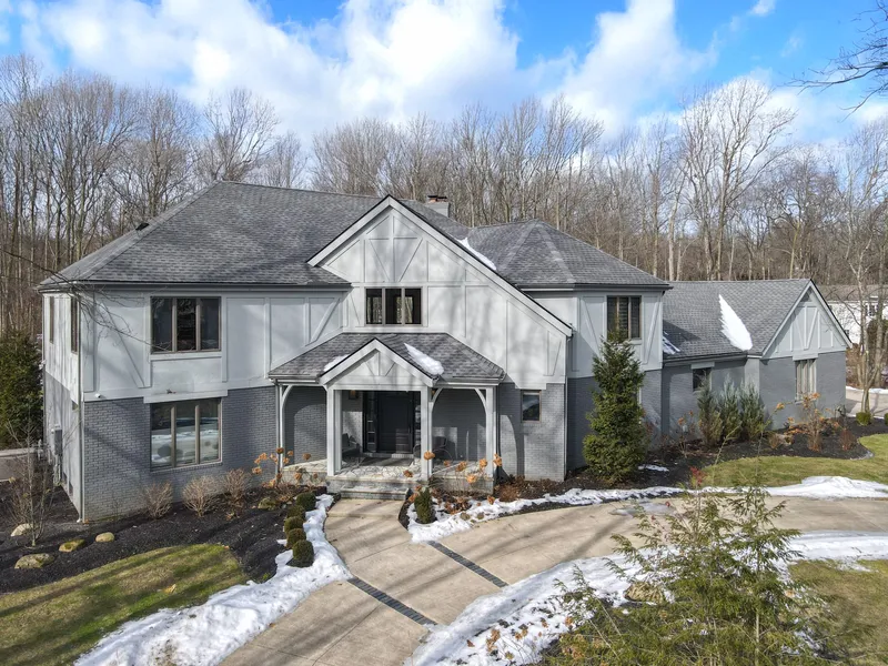 Beautifully reimagined and fully renovated, this stone and cedar transitional custom build has the luxury layout and high-end finishes you've been dreaming about! After a yearlong renovation in 2020 by award-winning Kingdom Home Builders, every surface has been thoughtfully curated for comfortable living, intimate gatherings, and large-scale entertaining. The expansive manicured corner lot offers a concrete circular drive, mature trees, outdoor lighting, and a gracious front entry. Inside, stunning Pecan Imperial hardwood flooring exudes natural warmth; while soaring ceilings and abundant windows invite sunlight and private backyard views. A natural stone oversized hearth and custom waterfall wet bar in the great room enhance entertaining, while an indoor-outdoor fireplace adds sparkle to the dining area and stone patio at the flip of a switch. Every luxury has been applied to the chef's kitchen, with a sleek, functional laundry room tucked behind. Custom pocket doors open to a cozy media room offering privacy or extra gathering space. The first-floor primary suite is a serene retreat, featuring heated floors, a spa-like bath with natural finishes, custom closets, a sitting area, a romantic glass fireplace, and sliders to an all-season salt water hot tub. Upstairs, a spacious loft overlooks the great room, ideal for a home office or lounge. Three generously sized bedrooms and two well-appointed full baths provide comfort for family and guests. The renovated lower level expands the home's versatility with luxury vinyl flooring, a dedicated workout area, a full bath and flex space. Set on 3 stunning acres, the outdoor space impresses w a bocce court, an expansive patio & composite decking with fully equipped outdoor kitchen, covered dining area + a separate private deck w relaxing hot tub. New or improved systems as of 2020 include roof, HVAC, electrical, water heater, whole house generator, outdoor irrigation and more. This home must be seen to be fully appreciated.