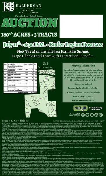 BenefitsBrand New Tile Main Found On Farm. Large Tillable Land Tract With Some Recreational Benefits As Well.