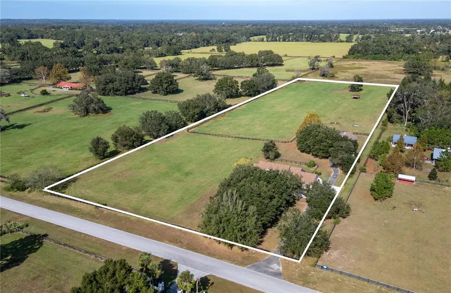 Set within the picturesque equestrian community of The Meadowlands, this 10-acre farm offers a tranquil slice of Central Florida living with exceptional versatility for equestrians. Perimeter fenced and gated, the property boasts wide-open spaces and a serene setting. The classic ranch-style home is both inviting and functional, featuring a charming covered front porch, gentle shade from mature oaks, and tasteful landscaping. Inside, the home features a split-bedroom floor plan that includes a total of 4 bedrooms, 3.5 baths with over 2,200 sqft and a dedicated home office ideal for remote work or personal projects. The living room provides a bright and spacious gathering area with a cozy fireplace and French doors that open to the back lanai. The kitchen is well-equipped with wood cabinetry, black appliances, a tiled backsplash, and a large breakfast bar, seamlessly flowing into a sunny ...