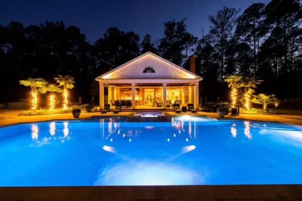The focal point of the backyard is the recently constructed pool and pool house. Built in the Neo-classical style, this incredible outdoor living space is beautifully designed and appointed. Details include a full, covered outdoor cooking area with stainless grill, green egg, and custom hood vent. Retractable screens can be raised and lowered with the push of a button allowing for year round use while enjoying the outdoor fireplace, living and dining area. Interior appointments include additional kitchen space, pecky cypress ceilings, and a guest bedroom and full bath. The oversized pool is accentuated by arcing jets and a hot tub. The entire pool area is enclosed with brick and metal fencing and is beautifully landscaped, complete with full landscape lighting.