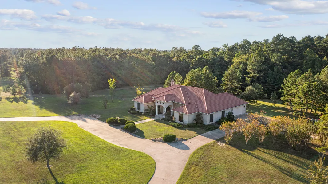 Mediterranean flair! This beautiful home with 4 bedrooms and 2.5 baths sits on 3.24 acres. Amazing island kitchen with stainless appliances, pot filler, additional sink in island and more! Statement gas fireplace in the living room. Primary suite offers a massive glass enclosed shower, jetted tub and spacious closet with built ins. Laundry room space for a side by side refrigerator. Mudroom storage. Flex space and media room. Take advantage of the beautiful weather and cook meals in your outdoor kitchen! Covered and open patio area enjoy a peaceful view. 16kw Generac generator.
