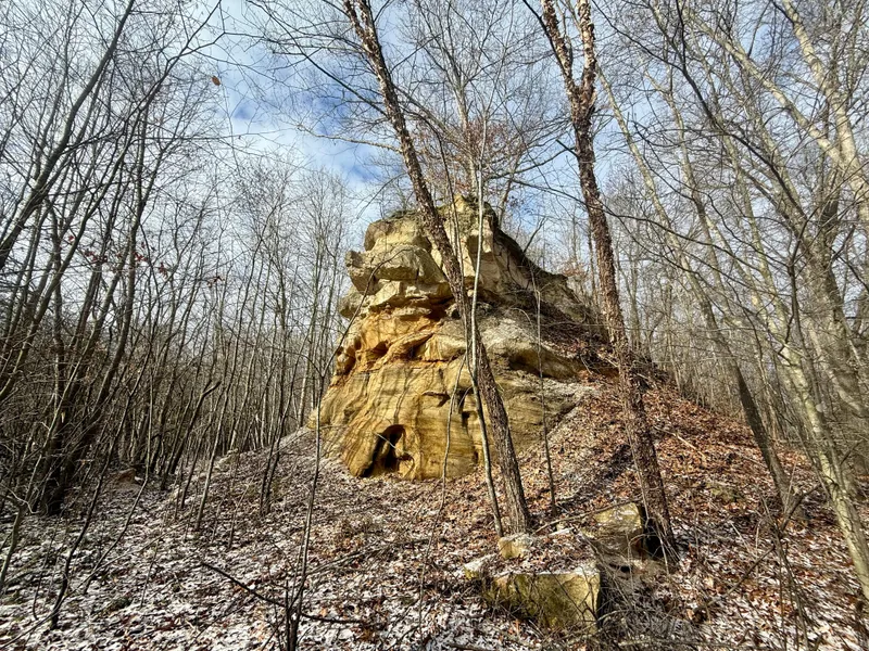 This property lays exceptionally well for hunting and recreation, offering rolling elevation with multiple natural benches that gradually climb toward a long ridge top. Stretching along the upper ridge is an impressive rock formation that not only adds striking character to the landscape but also creates natural funnels and travel corridors for wildlife. Portions of this formation include small cave-like overhangs and pockets that provide unique terrain.