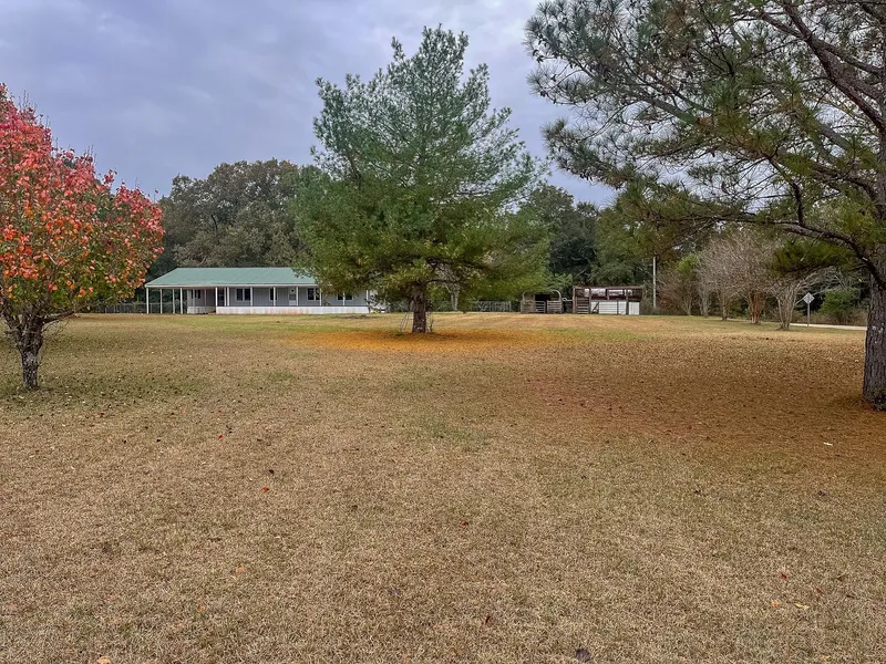 Welcome to this quiet country property with approximately 2,000 square feet of living space. This 5 bedroom, 4 bath home has been coated with freshly painted walls and new flooring throughout. The new central heating and air conditioning system ensures year-round comfort. Outside, a large front porch invites you to sit back and relax while enjoying the peaceful surroundings. The durable metal roof gives peace of mind knowing that the home is well protected from the elements. The property is adorned with big hardwoods and a mix of pine trees, creating a serene atmosphere. The chain link enclosed backyard provides a safe space for pets or for children to play. Additionally, there is a 4-inch well with a well house. A new septic tank ensures efficient waste management. This country property also offers quail houses and pens, as well as a horse barn.