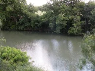 Pasture land and a cultivated field drops down to lush river bottom with large pecan trees on the banks of the San Saba River. The property is fenced and includes an equipment barn, hay shed and small river camp cabin.