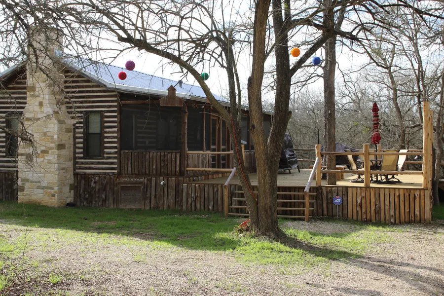 The house was constructed by Rustic Cedar Cabins out of Smithville in 2016. It is 9 foot outside plate walls and the interior has vaulted ceilings throughout. It is built like a real log cabin with a log and mortar chink exterior wall system. The mortar chink is carried into the fireplace wall in the interior of the house also. It is built 36 inches above the ground on pier and beam. The underneath portion has cedar underpinning that has mesh behind it to keep animals and varmits out. The HVAC is central air and electric heat, through undermount metal pipe insulated-lined duct, again to protect from outside animal penetration. The underneath of the house is spray foamed with 10 inches of R-30 insulation and the floor decking is 2 layers of 1 inch plywood glued and screwed and covered in 30# felt paper, with pine 2x6 flooring on top. The underneath the house plumbing has also been sprayed with spray foam insulation.