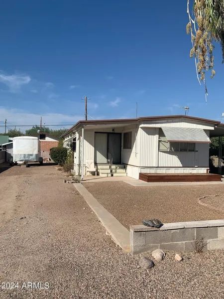 Manufactured home on it's own lot. Roof repairs have been done. Septic and tiedowns are certified and ready for new loan. You can access the property from the front and back streets. This 2 bedroom/1 bathroom boasts a large 38ft. entertainment room with a wet bar, perfect for entertaining on holidays or special occasions. It has 2 additional rooms, one with an ac wall unit. The 1 car detached garage has a bathroom. There is RV parking, a fenced area for pets, and additional covered parking in the back. We welcome all offers!