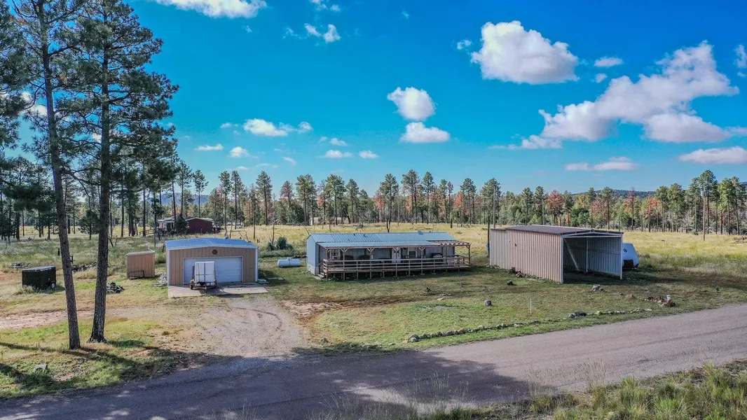 Welcome to a bright, welcoming retreat in the quaint village of Timberon, NM. This home would be perfect for full-time living, a vacation getaway, or a seasonal residence. This 2 Bedroom, 1 Bath home features a comfortable floor plan with easy circulation between living spaces. The open living area flows into a practical kitchen with access to the covered back porch to take dining outside on a beautiful mountain afternoon or evening. The large front covered deck is ideal for morning coffee, outdoor entertaining, dining and enjoy taking in the morning sunrises and evening sunsets. The property sits on just over a half acre and also has a large 16x35 RV Carport with electric hookup, allowing potential extra living space for guests and family that come to visit. Additionally there is a large 24x24 - 2 car garage/workshop with power, the perfect workspace for hobbies, projects and storag...