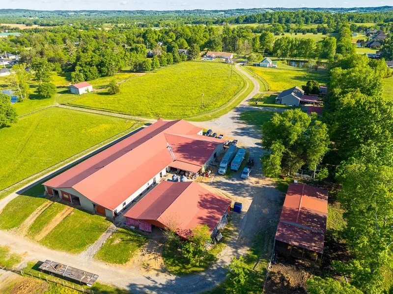 *The MAIN TRAINING STABLE features a 200 x 33 INDOOR RIDING AREA & includes 31/12x10 stalls inside, the East Wing with 17/14x12 stalls, & the West wing with 8/21x10 stalls - FOR A TOTAL OF 56 STALLS IN TRAINING STABLE! This building also includes a 1 bedroom/1 bath APARTMENT, OFFICE with restroom, 21X12 TACK ROOM, TWO wash racks, NINE crosstie/grooming stalls, 6 DRYING STALLS, a FARRIER STATION, & storage areas!