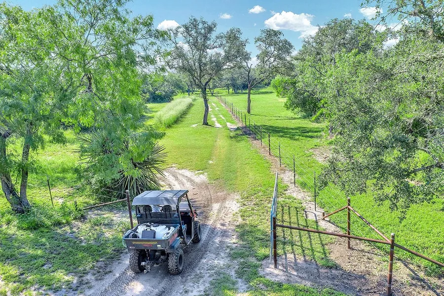 Miller Ranch is an immaculate +/-45.87 Acre residential and recreational property located within Bee County. Secluded and private, this is the perfect oasis retreat! The rolling and gently sloped topography boasts in every aspect, beginning with its 1,227 Ft of road frontage, low-net fence and gated entry with limestone drive. Many mature oaks reside throughout the property, along with cleared/accessible tracts and plenty of brush for wildlife. Continuing down the winding drive to the round-a-bout is a beautiful 2,008 sqft rock and metal home. Complete with several upgrades, this 2 bed, 2 bath plus oversized sunroom is a MUST SEE! Need more space?! There are multiple options to easily add a 3rd bedroom!! Exquisite floor to ceiling rocked, wood-burning fireplace takes the focus as you enter the home, pairing wonderfully with the knotty alder cabinets, doors and accent walls. High ceilings, recessed lighting and granite counter tops run throughout. The farmhouse kitchen sink overlooks the lush backyard and stock tank and is coupled with custom cabinetry and accent lighting. The handcrafted master bedroom is highlighted by a an extensive walk-in, tiled shower and a voluminous, walk-in closet! This, along with the expansive laundry and wash space, water softener, reverse osmosis system and full sprinkler system, is only part of what makes the property exemplary. Extending out the luminous sunroom, is a crafted and custom back patio, complete with great gathering and BBQ space. The exterior of the home is surrounded by elaborate landscaping and rich carpet grass (all considerably draped in shade by many oaks), a gardening area and a sizable two-car carport. Continuing out the backyard is a gorgeous 1/8 acre stock tank - water well fed, fully stocked, lined and aerated. To the left of the home and stock tank, sits a large, fully-enclosed 30'x40' metal shop with insulated roof and slab foundation. Off each side of the shop, extends an additional covered space of 24'x40' - perfect for parking trailers, tractors, etc. Other outbuildings include a small cattle barn with pens, hay barn/pole barn, green house, garden shed, and water well housing sheds. Ag valuation is in place. Property is not located within a FEMA flood zone.