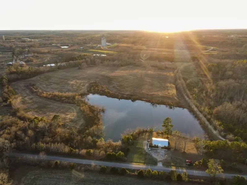 This mini-farm offers a variety of amenities for someone looking to start a homestead, whether it be gardening, row crop farming, raising livestock, or just enjoying the peace and quiet that a rural area offers. The property's highlight is the 4+ acre lake stocked with bass and bluegill, and they are plentiful! Beyond the pond are 32 acres of tillable acreage that the current owners lease to a local farmer for $2,800 per year. The soils here are sandy loam, and the land would set up nicely for cattle or other livestock. The house is 4 bedroom and 1 bath, built in 2002. It had a new metal roof put on in 2022, but the interior needs a little updating. It could be used as a temporary home while you build your dream home overlooking the lake, as a rental or Airbnb. It was most recently rented out for $400/month. This property has 1,300’ of paved road frontage on Highway 63, and groceries and...